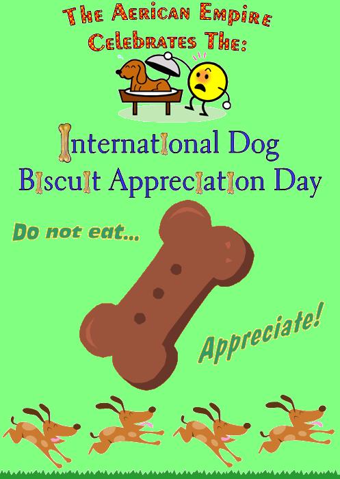 The Fourth Annual International Dog Biscuit Appreciation Day contest is the Empire's first ever "Make Us A Poster" contest. Interested citizens had between March 1st and March 25th to create a poster in honour (and shameless advertisement) of International Dog Biscuit Appreciation Day. The winning poster was chosen by popular vote. The winning poster by a clear 9 out of 18 votes was Mr. Nathan Maron, who chose, from the following prizes: